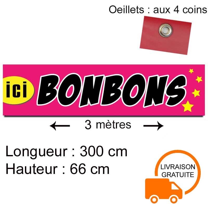 Banderole imprimée "BONBONS" 3 mètres fond rose
