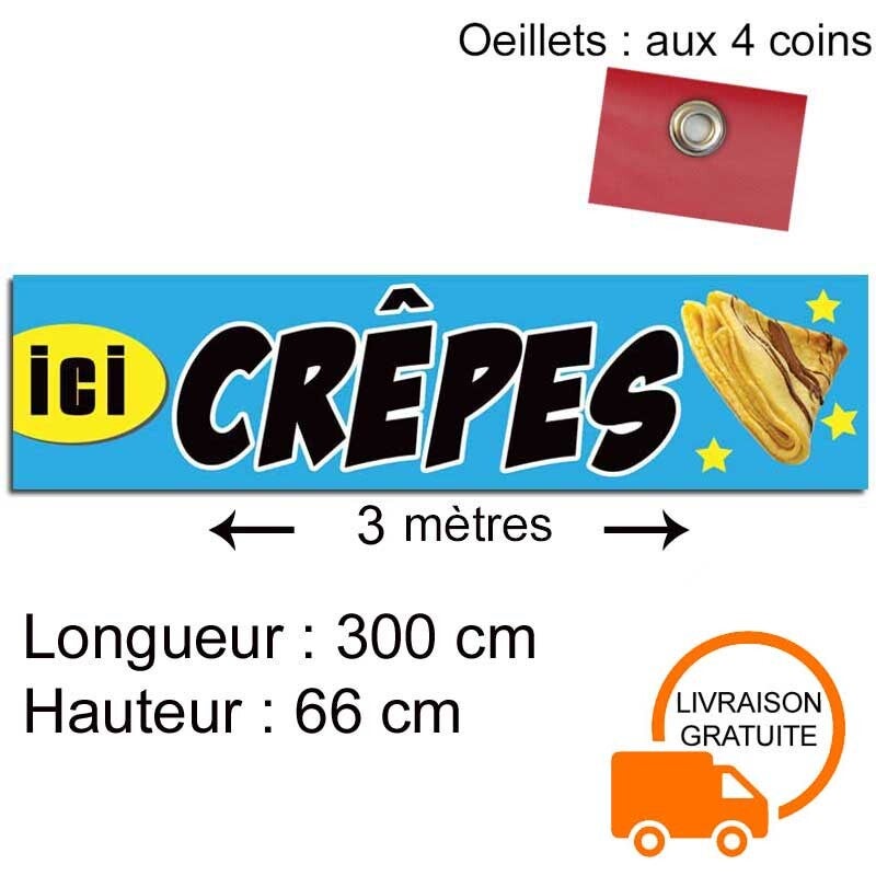 Banderole imprimée "CRÊPES" 3 mètres fond bleu
