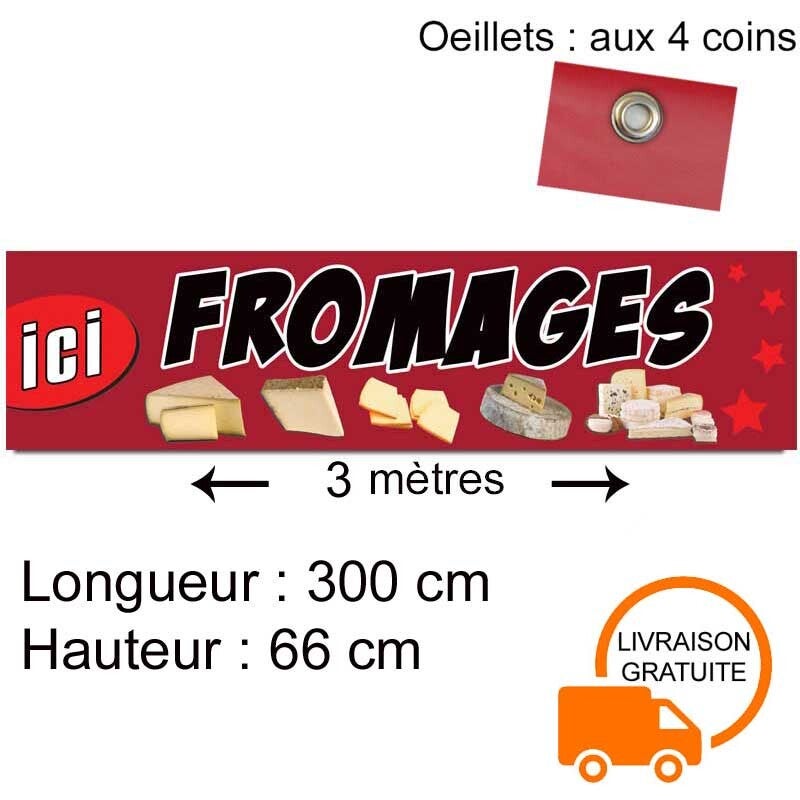 Banderole "FROMAGES" 3 mètres fond bordeaux