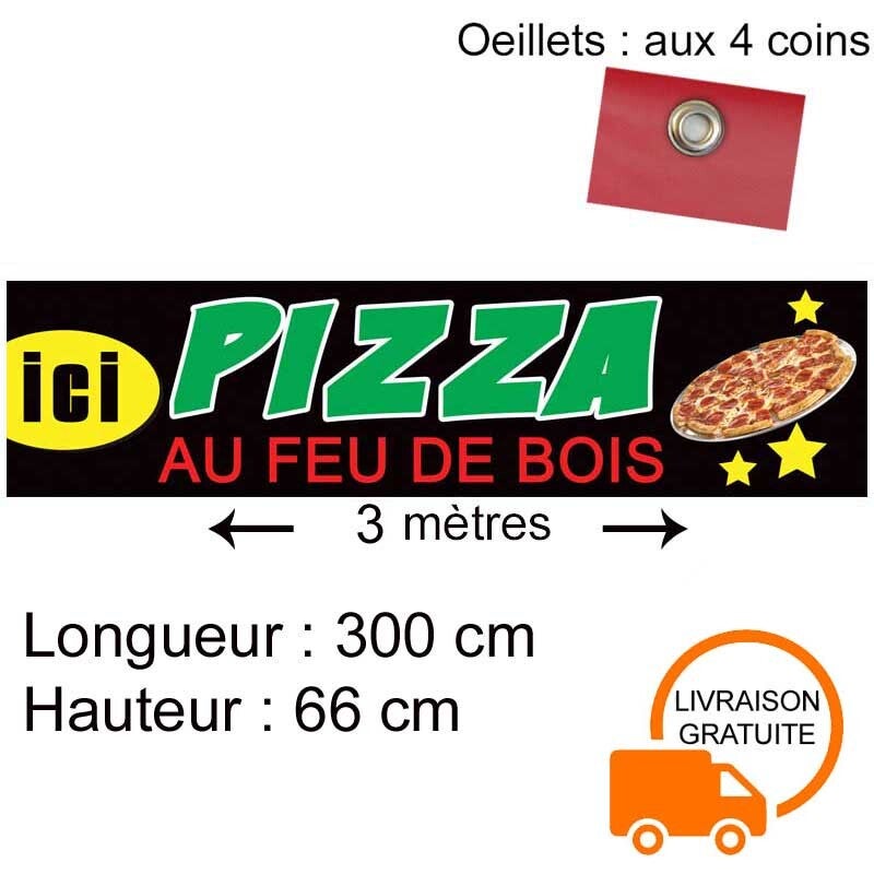 Banderole imprimée "PIZZA au FEU de BOIS" 3 mètres fond noir