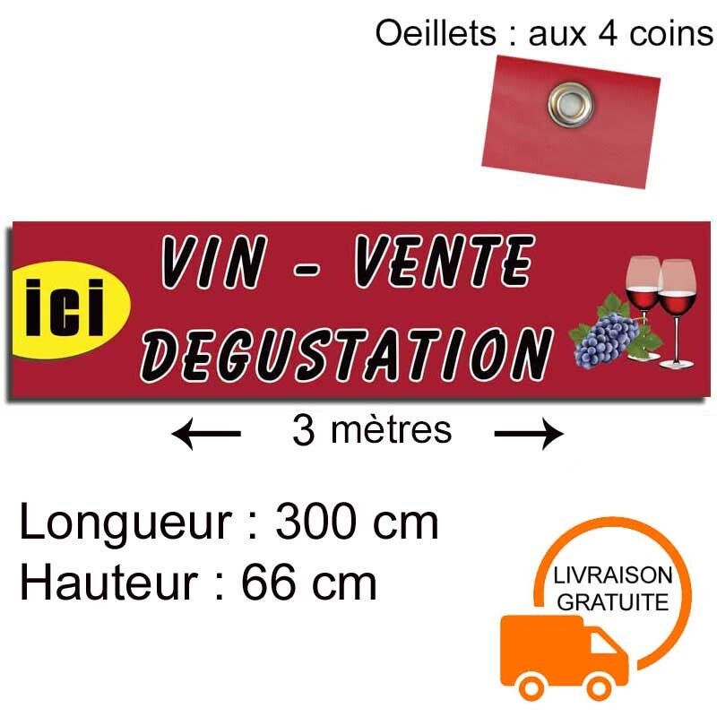 Banderole imprimée "VIN VENTE DÉGUSTATION" 3 mètres