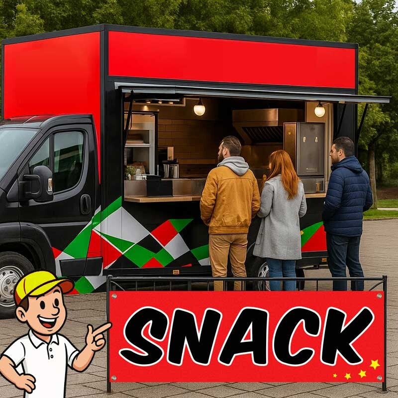 Multiplier les emplacements augmente la répétition visuelle et la mémorisation : une banderole près de la route, une sur le grillage, une sur le camion/snack mobile… L’œil ne peut pas la rater. Résultat : plus d’entrées, plus de commandes à emporter, plus de visibilité locale sans budget pub récurrent.