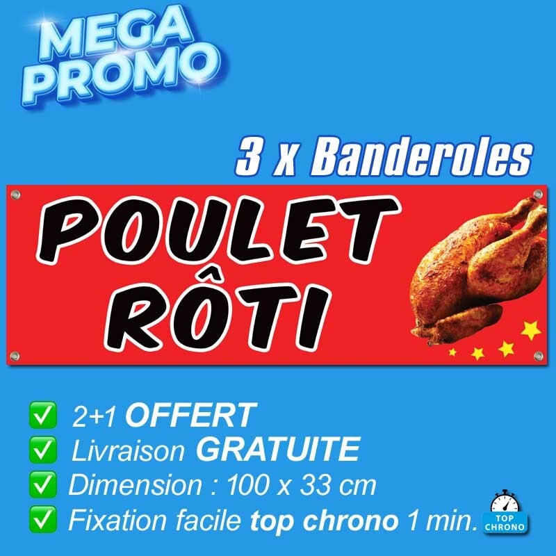 Pack 2+1 Offert – Banderoles Poulet rôti 100×33 cm (x3)